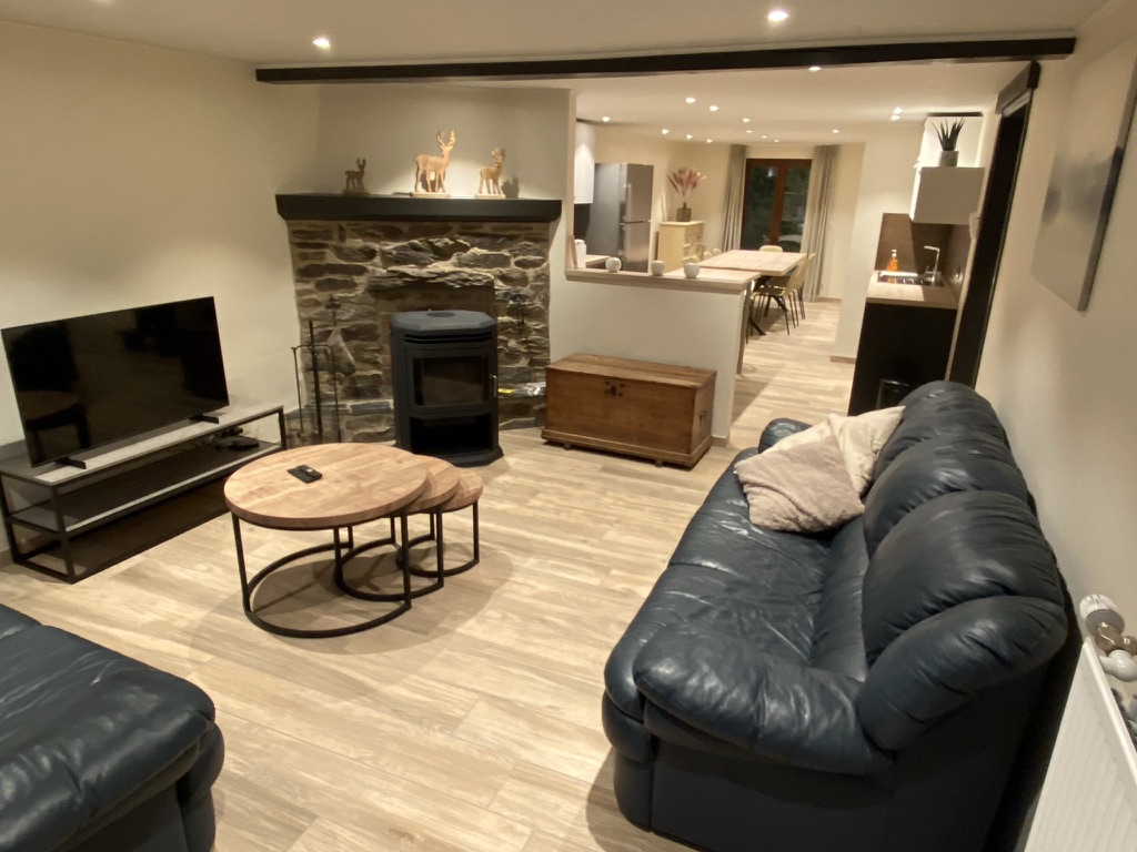 Gîte de caractère en pierre du pays, avec 3 chambres, 2 SDB, salon avec feu, salle de jeux et jardin. L'endroit est aussi chien admis et vélo-friendly !